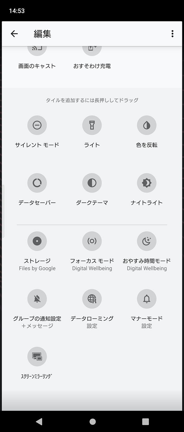 Androia 11アップデートで加わった「スクリーンレコード(画面録画機能)」や「ニアバイシェア(ファイル共有機能)」のほか、「おすそわけ充電」などが加わっている。