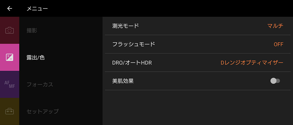 デジタル一眼カメラαシリーズやサイバーショットRXシリーズで見慣れたUI。