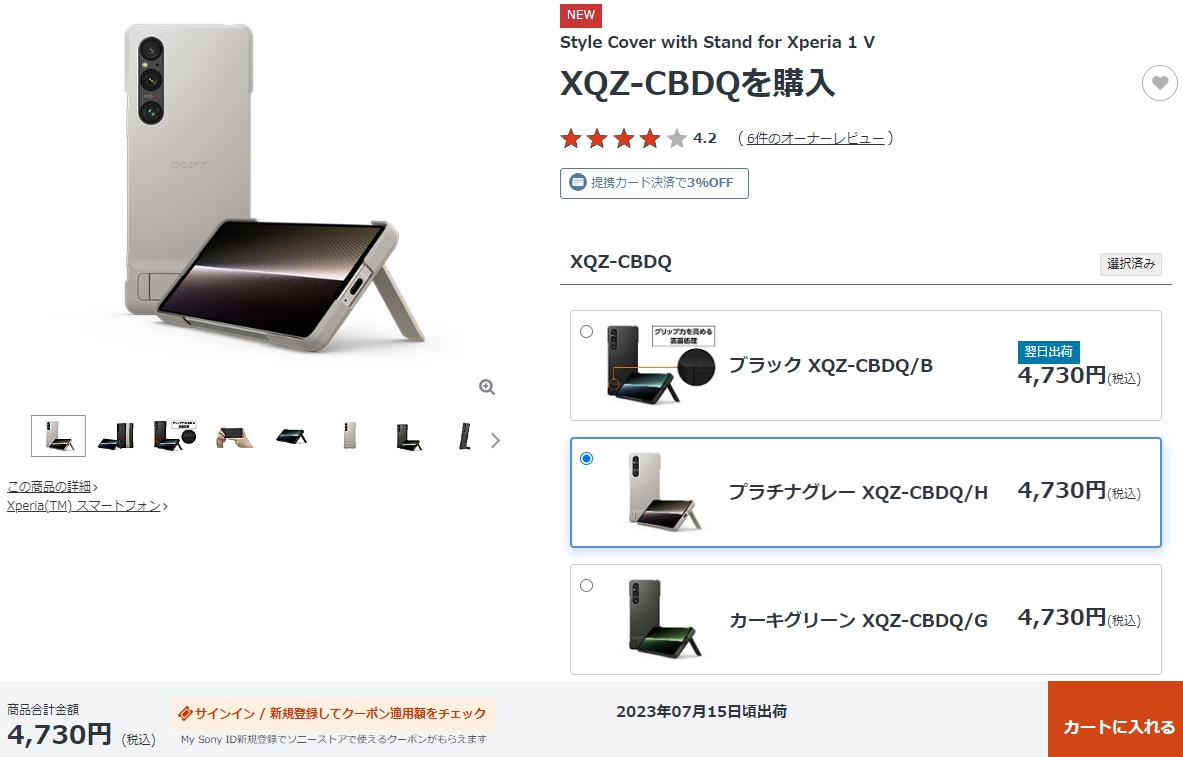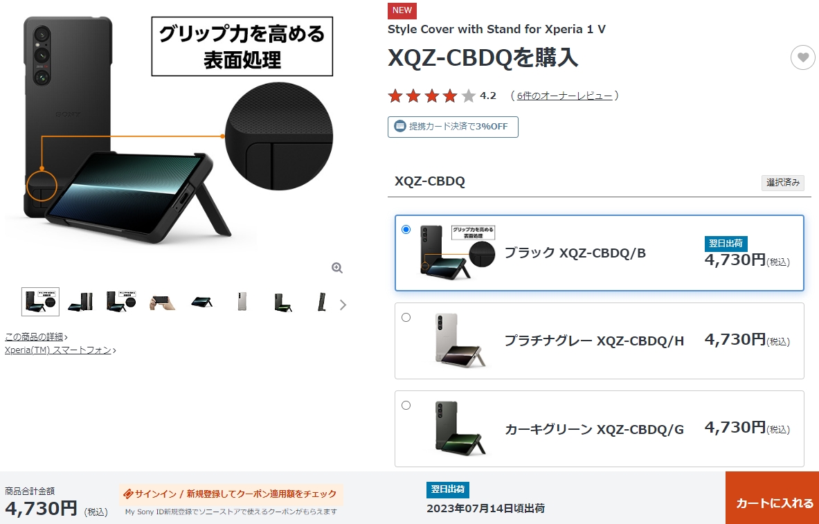 SIMフリーモデル「Xperia 1 V(XQ-DQ44)」発売直前 関連商品 ソニーストア納期情報。(7月13日時点)全商品7月中にお届け予定。