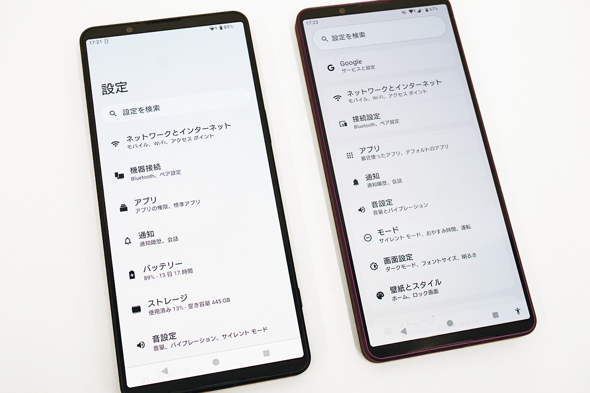 Xperia 1 VII Android 15の設定メニュー配置 | Xperia 1 VII Android 16の設定メニュー配置 |