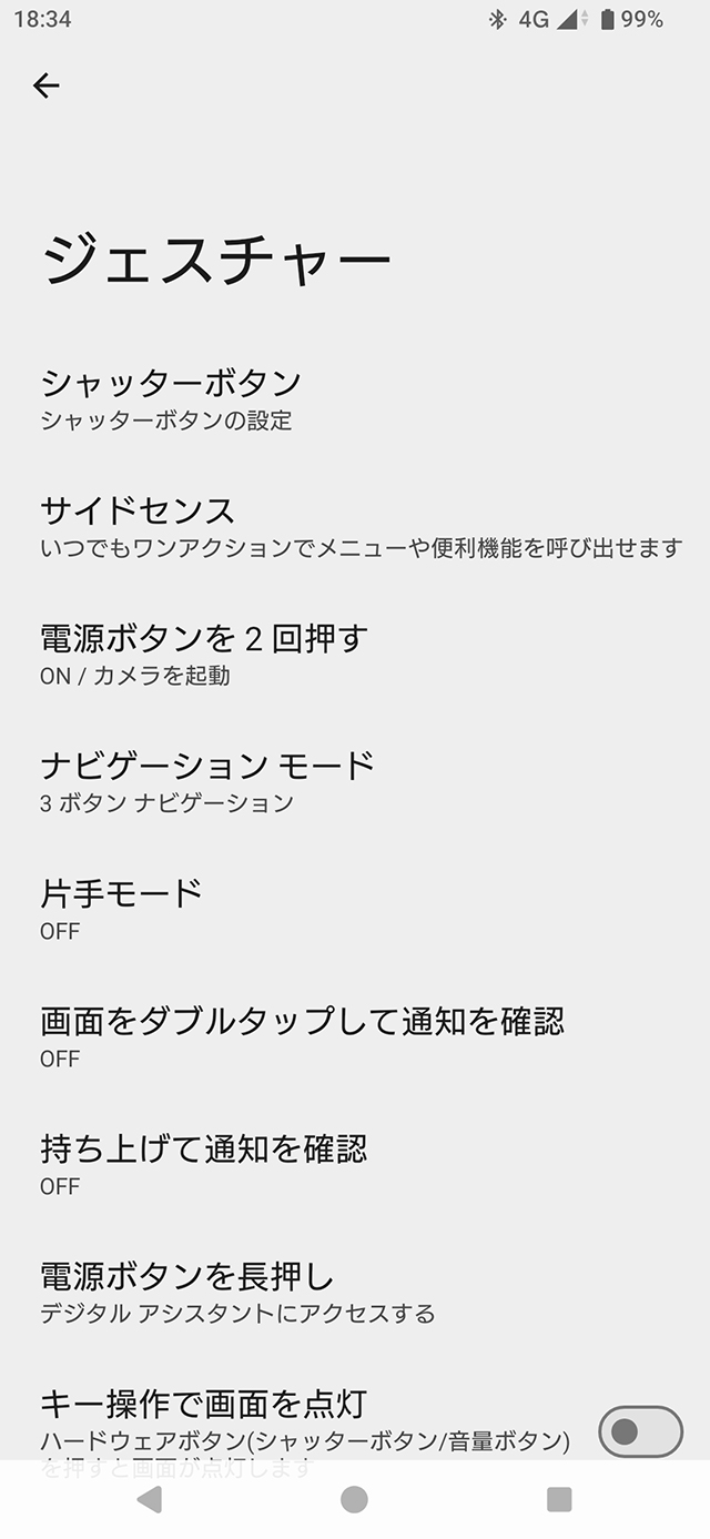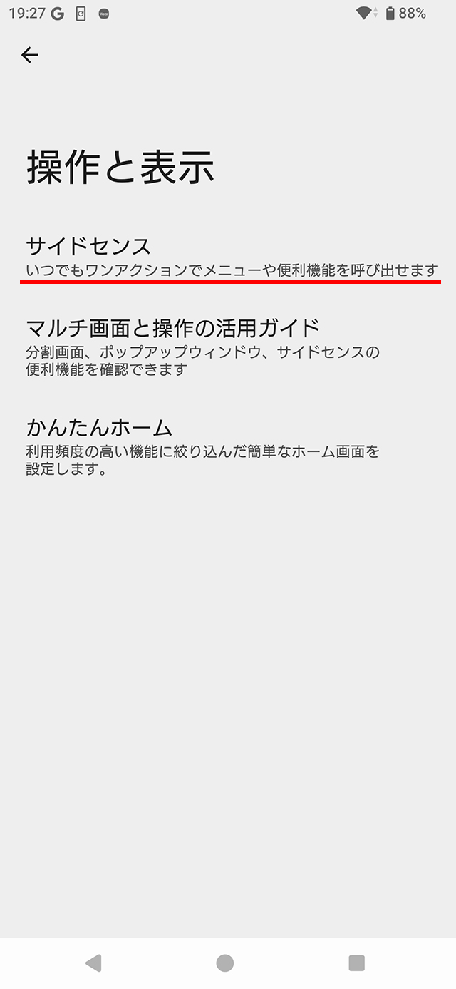 ※[設定] > [操作と表示] > [サイドセンス]の項目は削除。