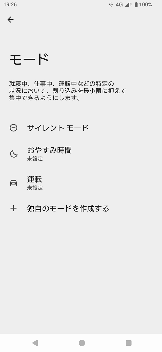 [設定] > [モード]をタップして設定。