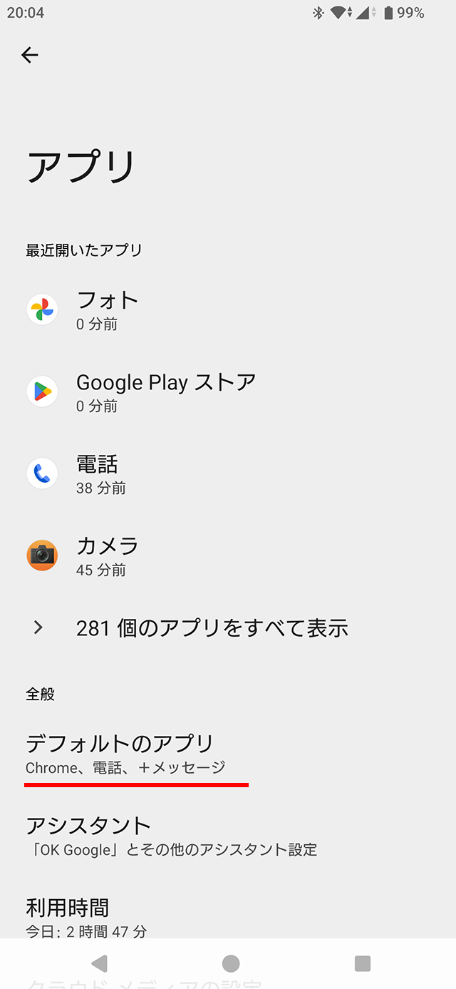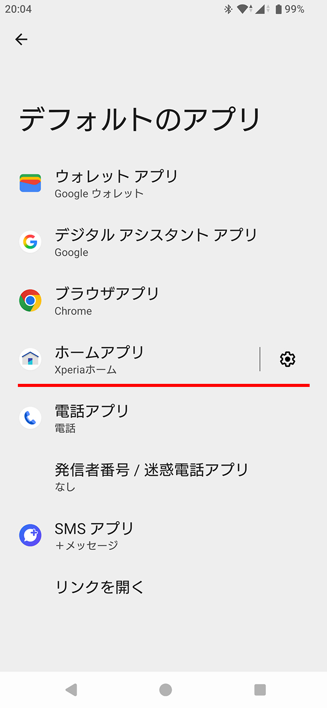 かんたんホームは、[設定] > [アプリ] > [デフォルトのアプリ] > [ホームアプリ] と進んで[かんたんホーム]をタップする。