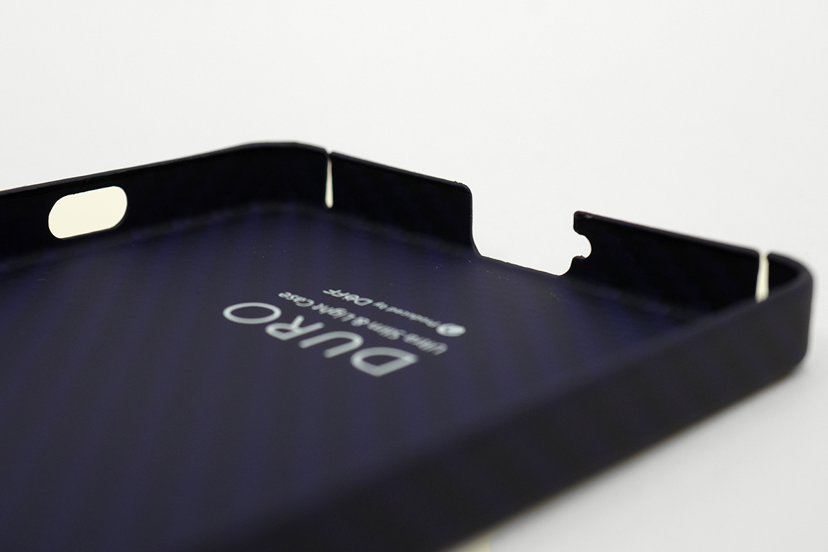外周全体をしっかりとカバーしつつ、ボタンの操作性やUSB-Cコネクターの脱着を考慮して調整されたカットライン。滑りづらくサラリとした肌触りに汚れの付きにくい表面処理など、長きにわたりアラミド繊維でケースを作り続けてきたディーフのノウハウが詰まっています。もちろん、4G,5Gを含むデータ通信、通話、Qiワイヤレス充電、NFC通信、モバイルSuicaなど使用上の影響はありません。