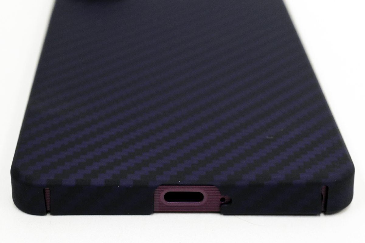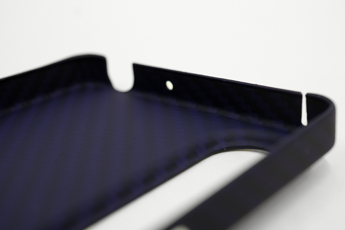 耐衝撃に優れたアラミド繊維を採用したケースで、約0.65mmという薄さと重量約13gという軽さが魅力。