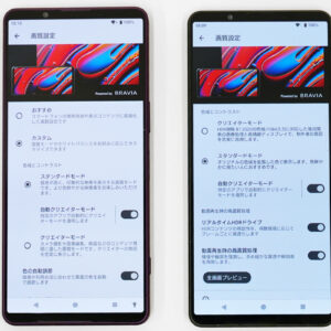 また、Xperia 1 VIIの「カメラアプリ」に搭載されているモードの並べ替えができる”撮影モードのカスタマイズ“について、Android 16 へアップデートしたXperia 1 VIには実装されていなかった。