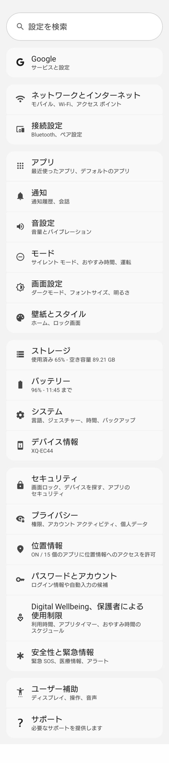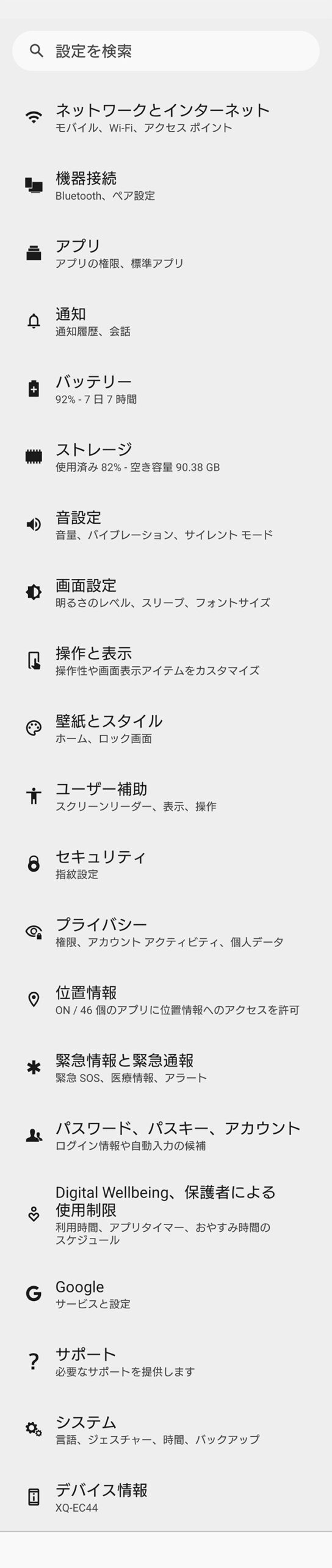 | Xperia 1 VIの設定画面(Android 16) | Xperia 1 VIの設定画面(Android 15) |