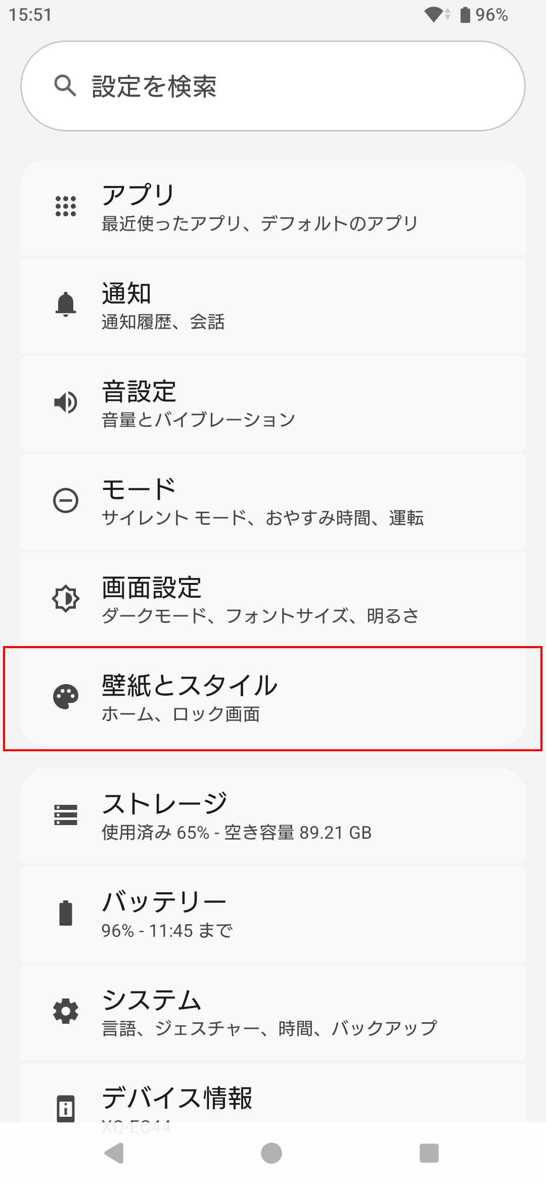 [設定] > [壁紙とスタイル]もしくはホーム画面長押し[壁紙とスタイル]に変更。