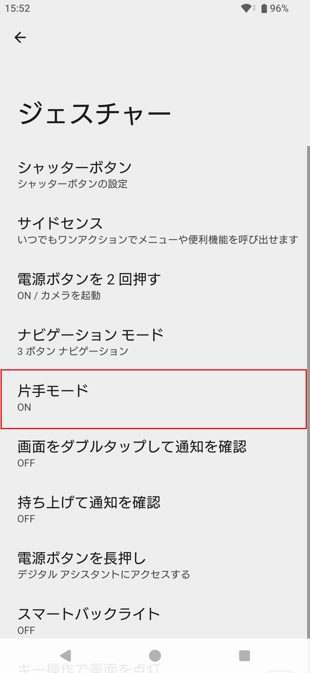 [設定] > [システム] > [ジェスチャー] > [片手モード]に変更