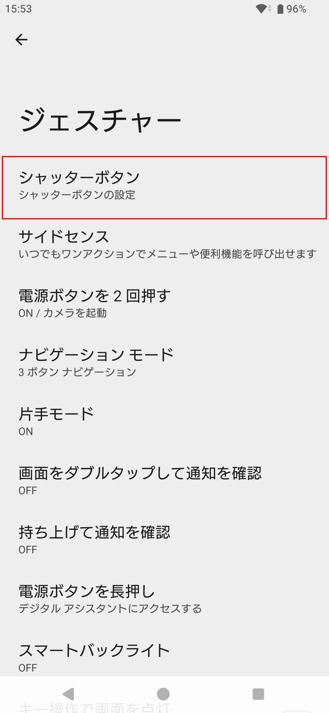 ※[設定] > [操作と表示] > [サイドセンス]の項目は削除。