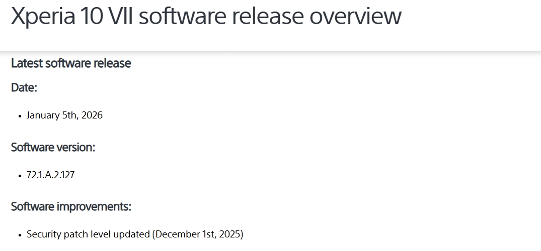 ●Xperia 1 VII / Xperia 10 VII 海外モデルアップデート情報