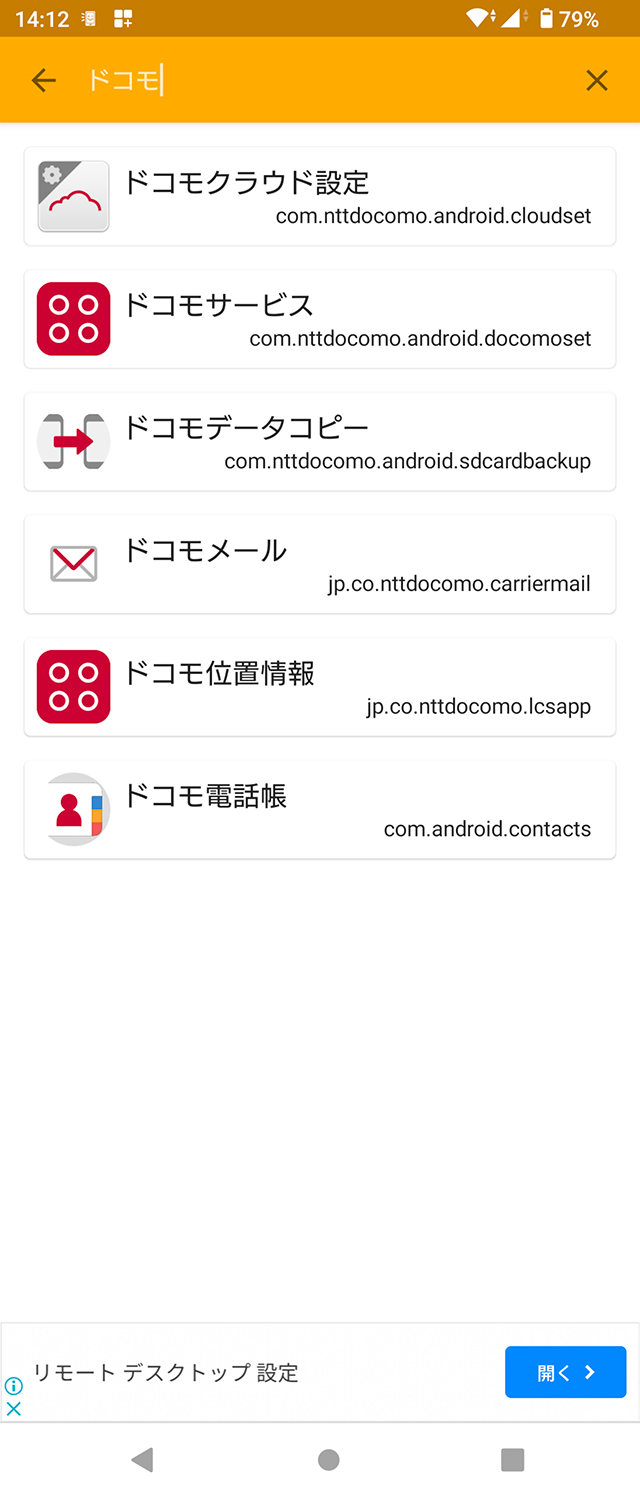 語句検索もできるので、自分が削除したいアプリとパッケージ名を照合していくという方法もある。
