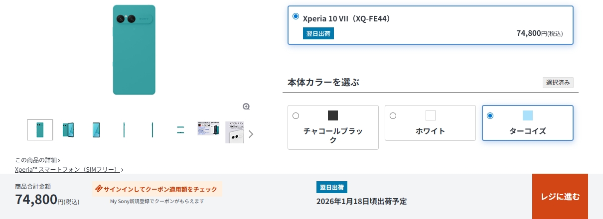 ソニーストアで販売中のXperiaラインナップの在庫状況として、2026年1月17日に納期情報を更新。