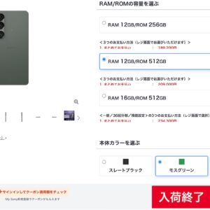 現時点で9種類のモデルの内、ストレージ増量版RAM 12GB/ROM 512GBモデルのモスグリーンについては入荷終了から突如在庫復活。