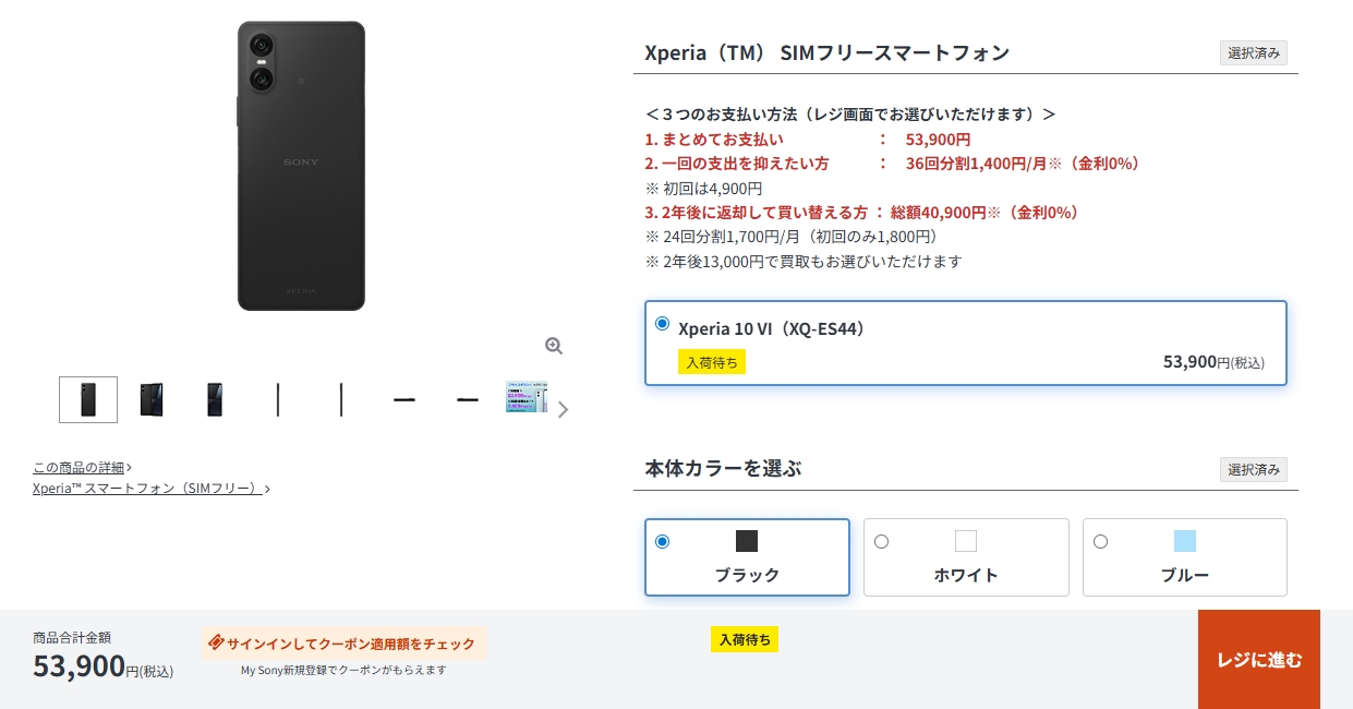 Xperia 10 VI(XQ-ES44)ソニーストア在庫状況(10月20日時点)