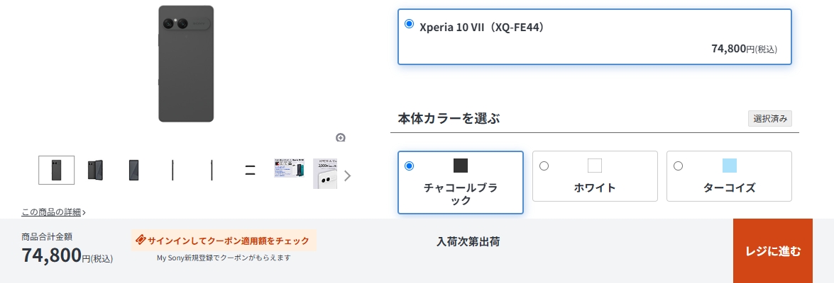 「Xperia 10 VII (XQ-FE44)」にキャッシュバックキャンペーンが始まった影響か、ソニーストアでは全色とも納期が遅延。