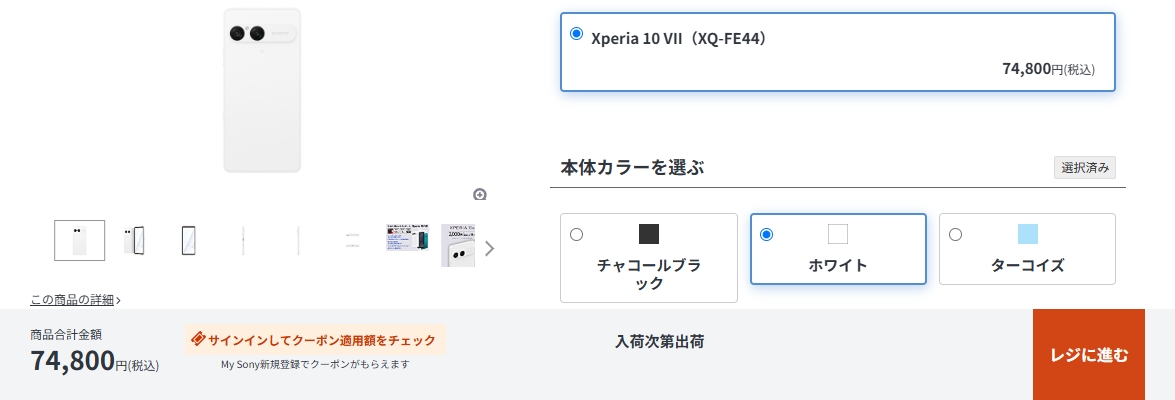 Xperia 10 VII(XQ-FE44)ソニーストア在庫状況(11月2日時点)