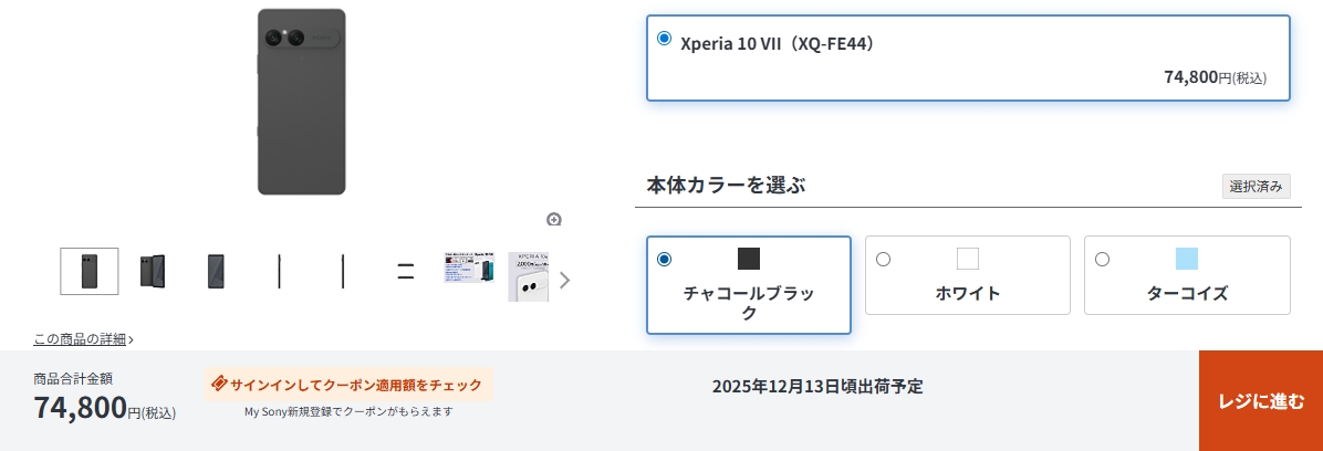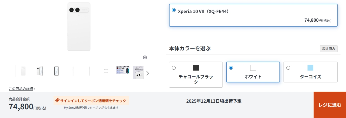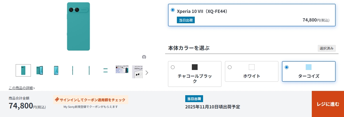 Xperia 10 VII(XQ-FE44)ソニーストア在庫状況(11月10日時点)