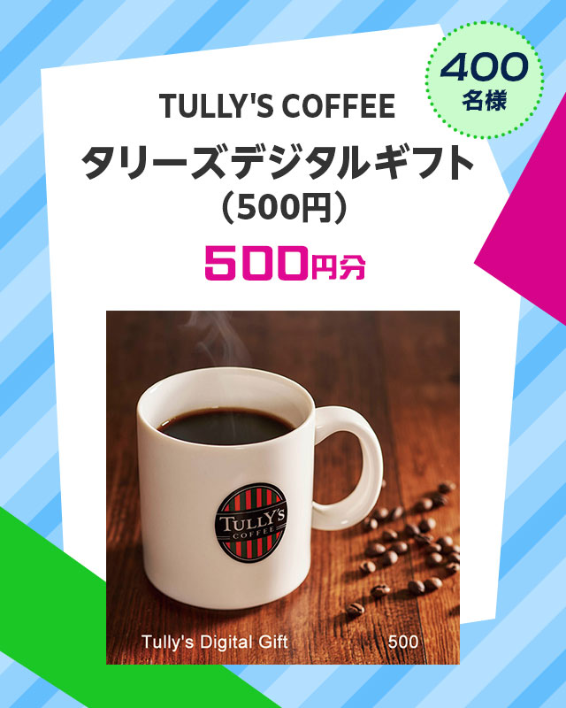 ・<抽選で400名様>TULLY’S COFFEE タリーズデジタルギフト(500円)