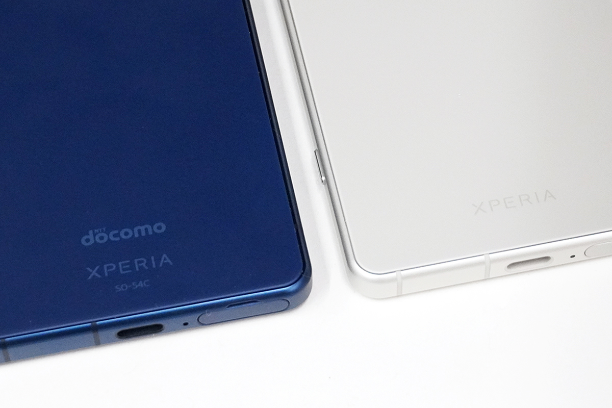 ドコモのモデルは今もなおキャリアロゴと製品型番を背面下部に配置されている。