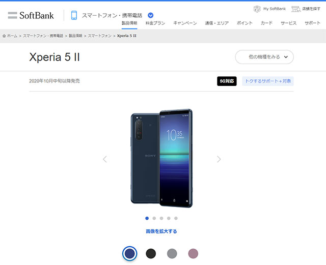 ソフトバンクより、5G に対応したフラッグシップレンジスマートフォン「Xperia 5 II 」を2020年10月中旬以降に発売する。