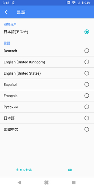 購入した「Xperia Earプラグイン(アスナ)」から、アシスタントの変更をタップすると、「日本語(アスナ)」として音声データがダウンロードされる。