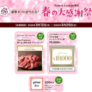 Xperiaユーザー向け「Xperia Lounge 最大1万円分が当たる!ラッキーキャンペーン」を2026年5月26日(火)まで開催。355名様にデジタルギフトgiftee Boxをプレゼント。