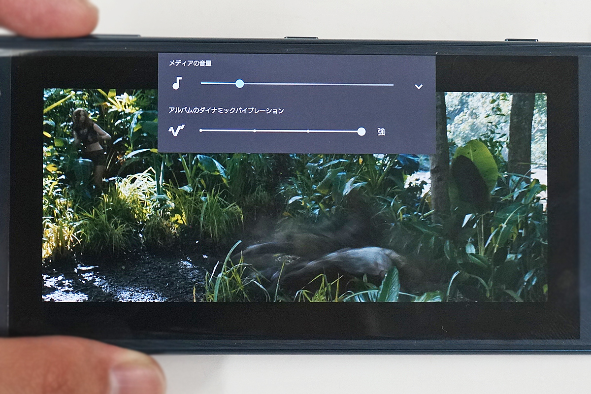 映像やゲーム、ミュージックビデオの音をリアルタイムに解析して、ソニー独自のアルゴリズムとパワフルなアクチュエーターから、コンテンツに合わせて本体が振動する「ダイナミックバイブレーションシステム」を搭載したことも新要素。