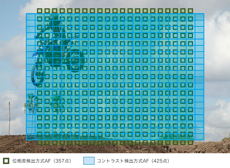 「RX100VII」は、撮像エリアの約68%357点(21×17)の像面位相差AFセンサーが配置されているという構造。