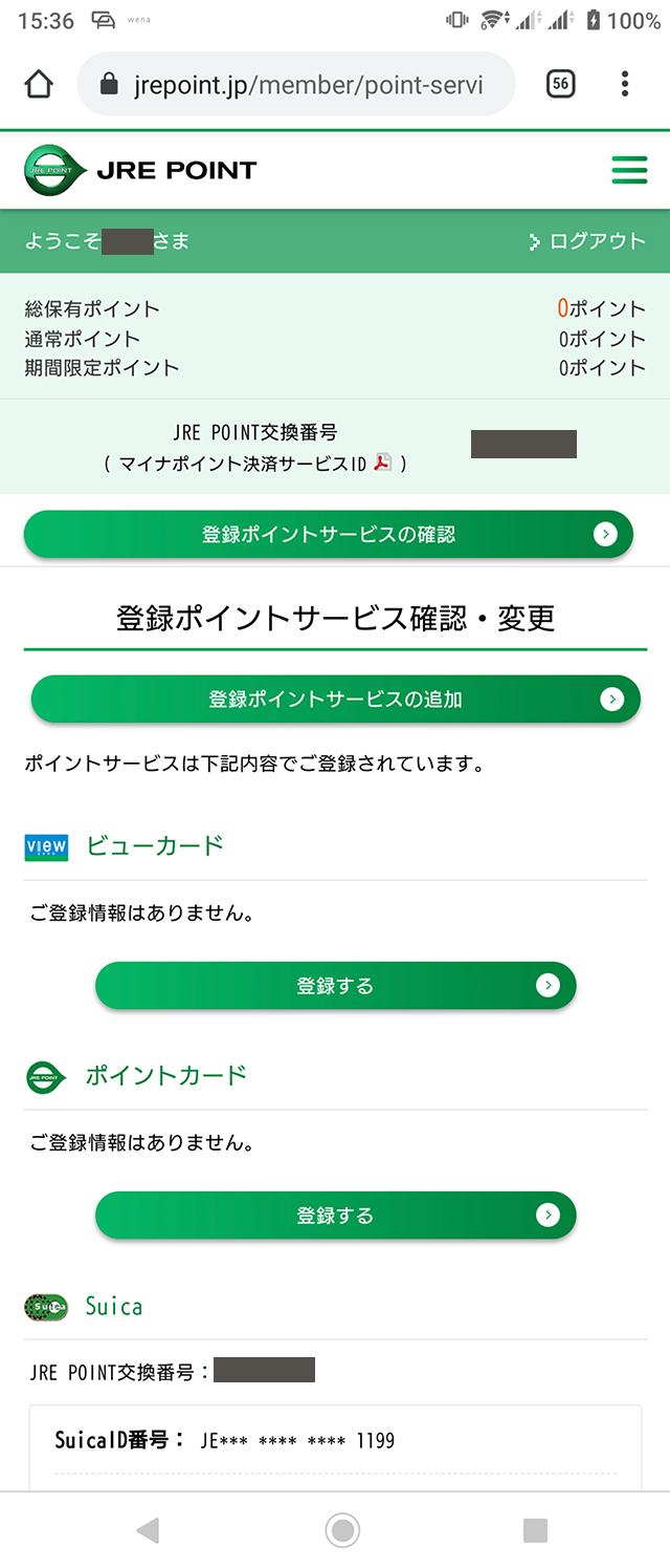 これで、JRE POINT WEBサイトで登録したSuicaでJR東日本の鉄道を利用すると、JRE POINTが貯まる。