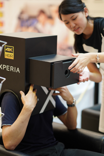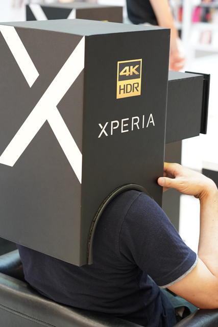そして、このカブリモノの前に「Xperia XZ Premium」を装着して映像を楽しんでねと。