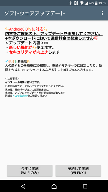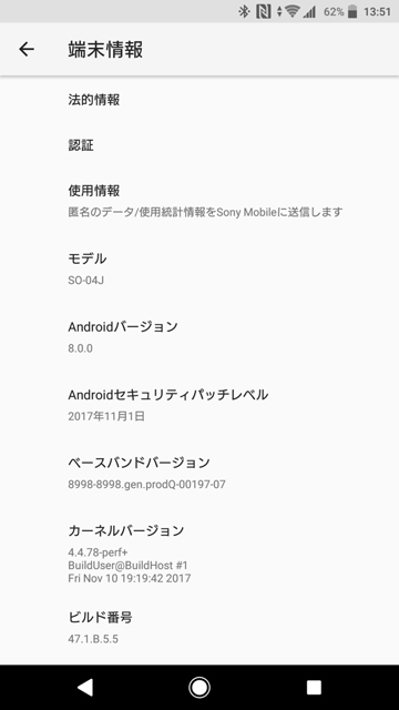 ●NTTドコモ Xperia XZ Premium SO-04Jの「Android 8.0(Oreo)」へのバージョンアップ