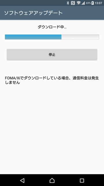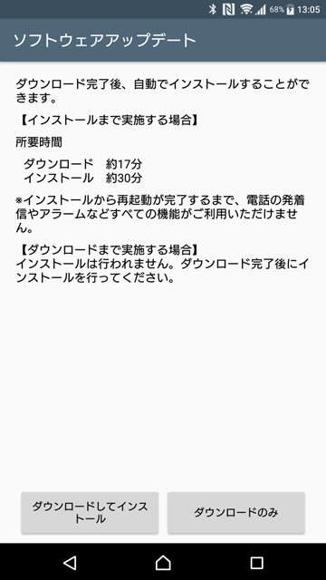 端末でアップデートする場合のかかる時間の目安としては、ダウンロードに約17分、インストールに約30分。