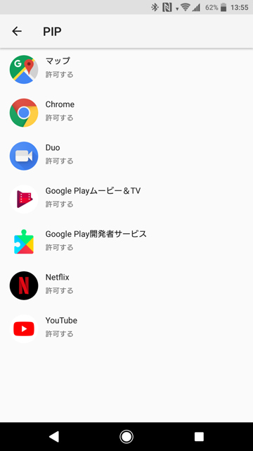 ただし利用できるアプリは限られていて、設定の「アプリと通知」にある「PIP」にあるものだけ。