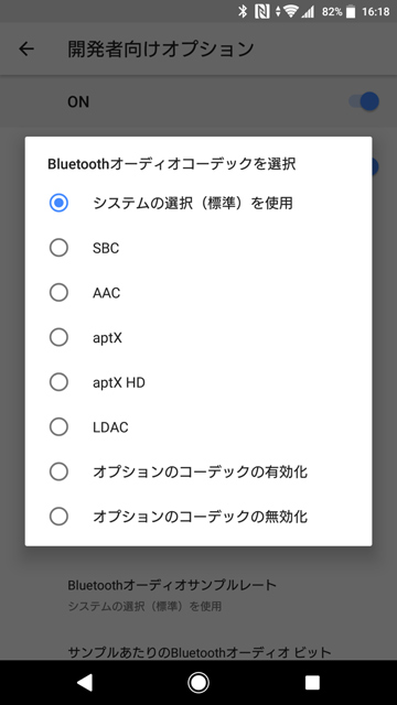 「Android 8.0(Oreo)」からbluetoothのオーディオコーデックに正式に、aptX HDとLDACをサポート。