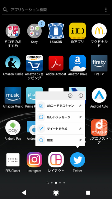 例えばTwitterアプリであれば、アイコンを長押しすると、吹き出しが現れて、QRコードをスキャン、新しいメッセージ、ツイートを作成、検索といったショートカットをモトのTwitterアプリとは別に置くことができる。