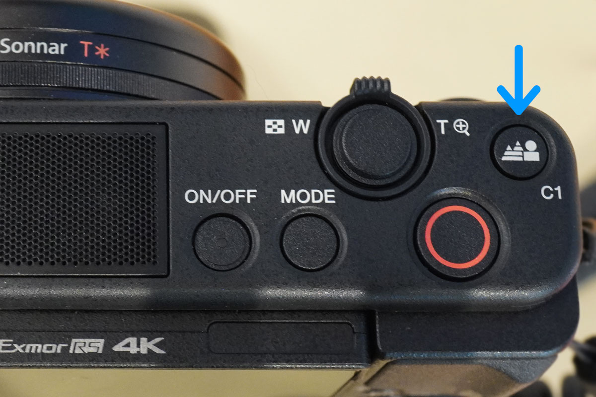 じゃあもうボタンでイッパツで切り替えるよというのが、「VLOGCAM ZV-1」の上についている「背景ぼけ切り換え」ボタン。