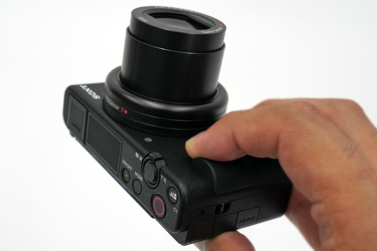 RX100シリーズと違って、「ZV-1」には両サイドではなくて片側にしかストラップホールがない。