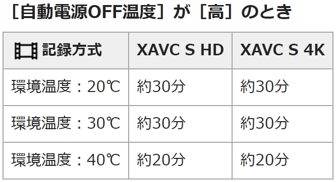 ![]() ZV-1Fの連続動画撮影可能時間 |